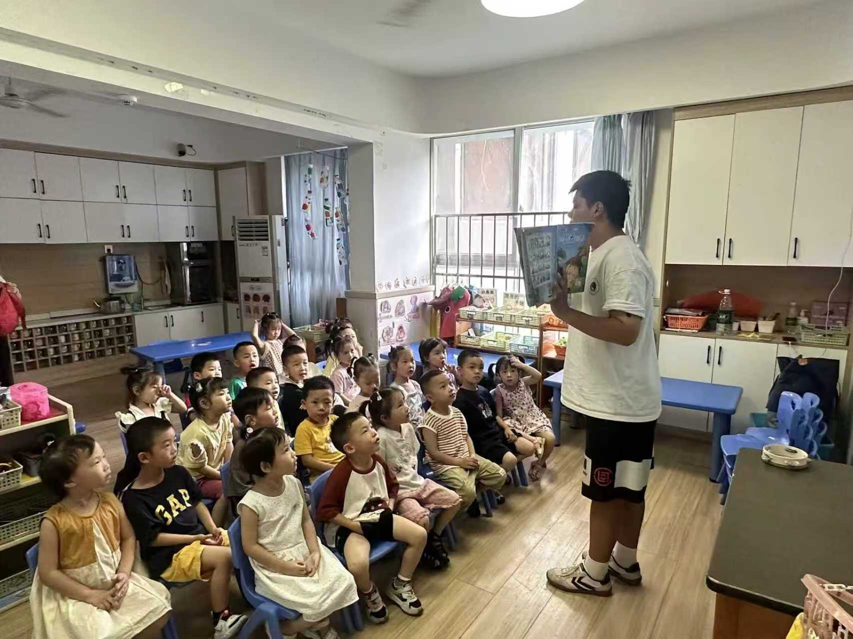 團(tuán)隊(duì)成員胡富聰拿出提前準(zhǔn)備的手繪插畫(huà):“看,這是農(nóng)民伯伯在大暑前后收割稻谷,就像我們昨天讀的書(shū)里,小熊為了過(guò)冬儲(chǔ)存蜂蜜——大自然有自己的時(shí)間表呢!”他還講起“大暑曬伏”的習(xí)俗,“古人會(huì)把衣服曬在太陽(yáng)下,就像給它們‘洗澡’,我們讀完書(shū)也要把書(shū)本曬一曬,讓知識(shí)更‘明亮’呀!”簡(jiǎn)單的比喻讓孩子們恍然大悟,紛紛舉手分享家里夏天的趣事。