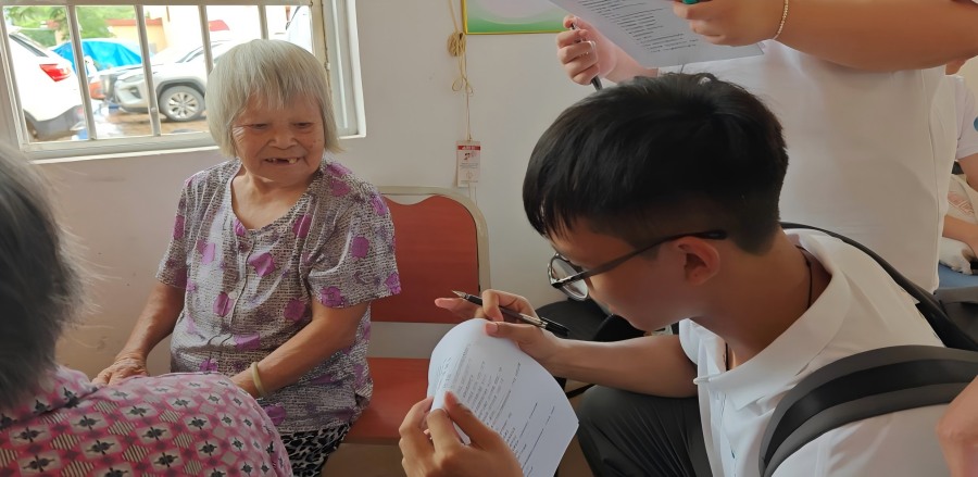 圖為突擊隊(duì)成員對(duì)村民開(kāi)展問(wèn)卷調(diào)研 盧澤喨供圖