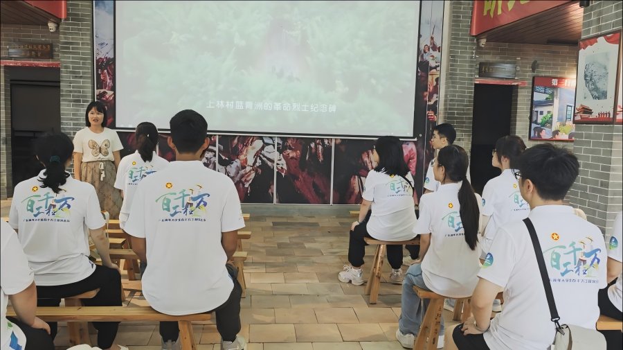 為充分挖掘當(dāng)?shù)匚幕ㄔO(shè)亮點(diǎn),豐富視頻拍攝優(yōu)質(zhì)素材,突擊隊(duì)前往上林村進(jìn)行踩點(diǎn)。在劉梁煒老師和村干部馮少英的引領(lǐng)下,隊(duì)員們懷著崇敬之心,先后參觀(guān)了上林三十二烈士紀(jì)念館和上林村史館。馮少英委員的生動(dòng)講解,讓隊(duì)員們深刻感悟到上林村深厚的紅色文化底蘊(yùn),先輩們的精神力量也在隊(duì)員們心中激蕩。