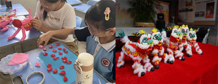 ▲圖為面塑課堂 ▲圖為面塑·醒獅成品