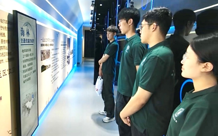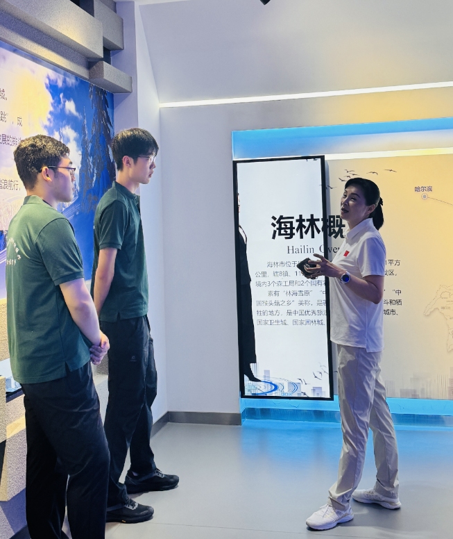 區(qū)位地圖與領(lǐng)導(dǎo)關(guān)懷視頻展區(qū),讓實(shí)踐隊(duì)成員對(duì)區(qū)域發(fā)展的支撐體系有了更立體的認(rèn)知。電子屏上展示的黑龍江省地圖與海林市地圖吸引隊(duì)員們駐足,俯身細(xì)看城市與鄉(xiāng)鎮(zhèn)的分布脈絡(luò),直觀感受到區(qū)域發(fā)展的地理基底。轉(zhuǎn)至領(lǐng)導(dǎo)關(guān)懷視頻區(qū),看著各級(jí)調(diào)研中對(duì)城鄉(xiāng)協(xié)同的細(xì)致叮囑、對(duì)鄉(xiāng)鎮(zhèn)產(chǎn)業(yè)的具體指導(dǎo),隊(duì)員們深刻感悟到區(qū)域發(fā)展的聯(lián)動(dòng),既需地理的天然聯(lián)結(jié),更需各方主動(dòng)串聯(lián),作為土木與交通學(xué)院的學(xué)子,正是串聯(lián)這些脈絡(luò)的關(guān)鍵一環(huán)。