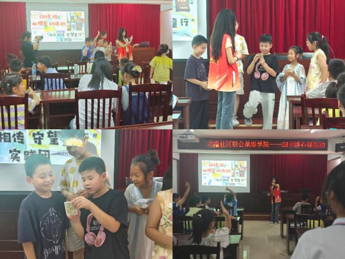 7月10日“聯想思維:OH卡牌心理互動” 趣味開展,團隊成員唐相寧選取歐卡牌引導孩子聯想創作故事,成員借心理學知識解讀回應,激發孩子想象力與表達欲,助力心理成長。