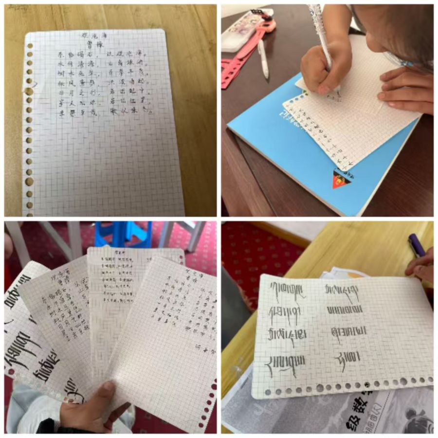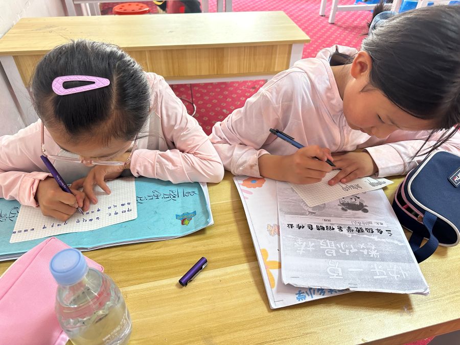晨光里的書桌前,志愿者們正用巧思化解難題:數學組把除法應用題編成“分青稞”的故事,讓三年級的白瑪盯著教具恍然大悟;語文組用“句子接龍”游戲幫孩子們梳理閱讀邏輯,原本皺著眉的卓瑪,很快舉著練習本喊“我會了”。書法練習時,志愿者次仁曲宗握著孩子的手,在宣紙上示范橫畫:“你看,這道橫就像高原上的路,要平平穩穩才好走。”被擦去的歪扭筆畫旁,新的字跡漸漸工整,孩子眼里的光也越來越亮。
