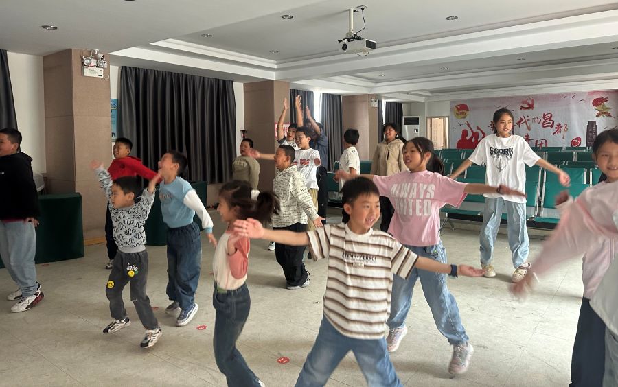 午后的陽光斜照進活動室,鍋莊舞的旋律一響起,剛才還安靜做題的小家伙們立刻活躍起來。志愿者扎西領著大家踏腳、轉圈,裙擺飛揚間,有孩子踩著節奏蹦出自創舞步,引得同伴們爭相模仿。二年級的達瓦拉著志愿者的手轉圈圈,笑聲像銀鈴般滾落在地板上:“明天還能跳這個嗎?”