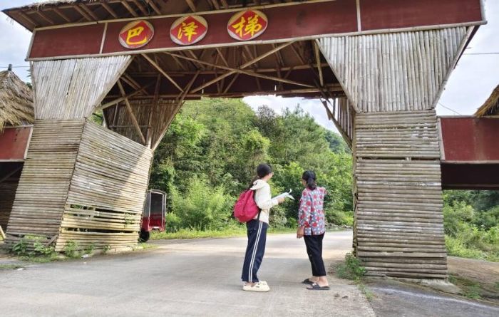 下午,團隊扛起拍攝設(shè)備,穿行于阡陌之間,捕捉村民在“那”田中插秧勞作的生動場景,記錄下刻有“巴澤”字樣的老寨門與路牌。“我們想用影像的力量,讓‘巴澤’這個充滿‘那’文化底蘊的地名被看見、被記住、被向往。”負(fù)責(zé)攝影的黎同學(xué)一邊調(diào)整無人機角度一邊說。以“巴澤”這一文化地名為支點,團隊希望通過這一途徑增強文旅吸引力,為古老梯田注入新的活力。