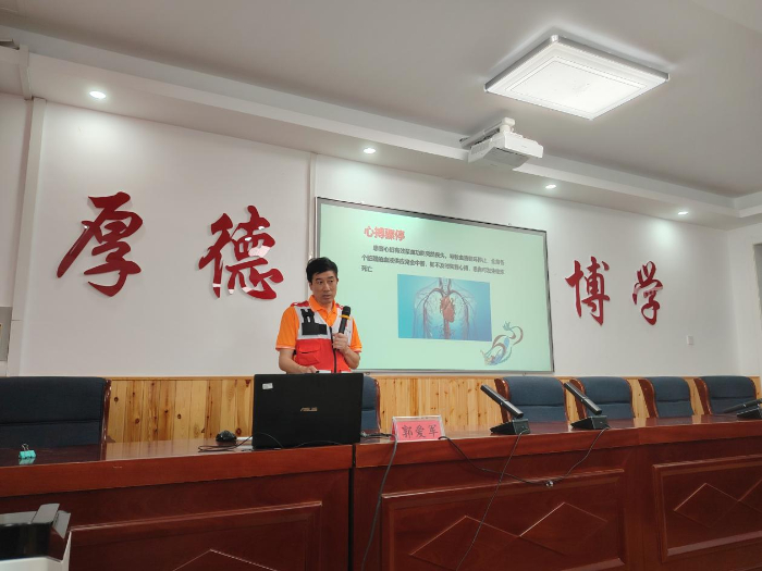 圖為郭愛(ài)軍老師為大家講解急救知識(shí)的重要性 王時(shí)會(huì)攝