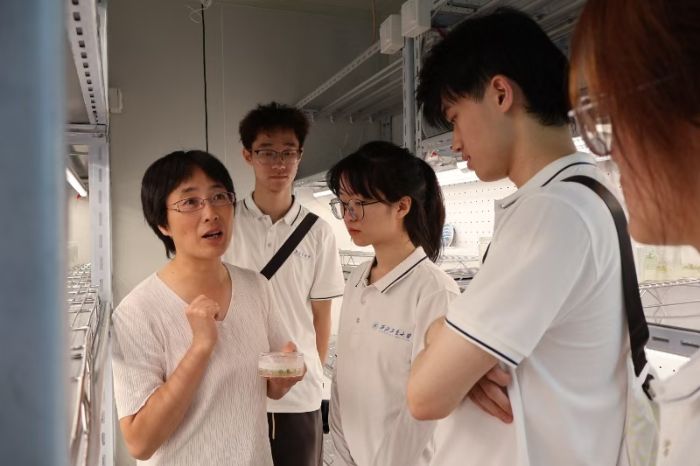 圖為實踐隊員參觀浙江大學生物育種實驗室。吳越供圖