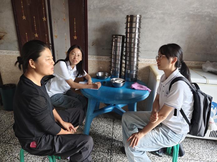 實踐隊成員采訪趙姐廚房村民 柯曉攝