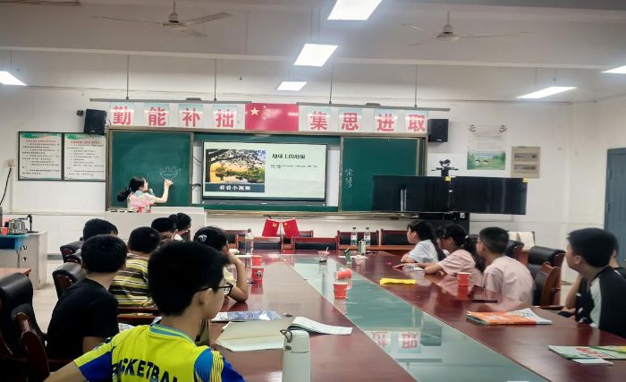 圖為在地理小課堂上支教隊員用精美圖片講述地球的風景地貌。為孩子們生動地展示了地球表面的多樣性和奇妙。孩子們被深深吸引,積極舉手發言,表達自己對世界各地的向往和好奇。劉康裕攝