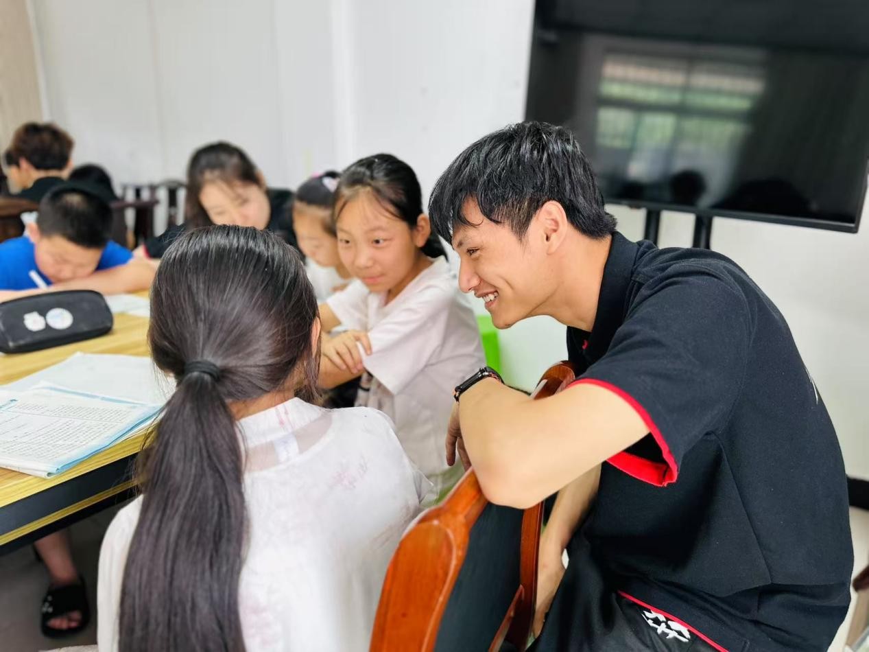 在“推普興鄉·語潤同心”活動中,西安外事學院工學院實踐團以“青禾拔節”為喻,悉心守護鄉村孩子的學業成長。成員們輔導小孩作業,專注于解答孩子們暑期作業中的每一個疑問。無論是數學題的運算步驟,還是語文練習的理解難點,實踐團成員都俯身案頭,輕聲講解,一步步引導孩子們理清思路、掌握方法。從面對難題時的困惑猶豫,到問題解決后的豁然開朗與清晰表達,孩子們在“推普小課堂”的溫暖陪伴下,如同青禾汲取知識的養分,悄然進步,學業基礎日益扎實。這每一次耐心的輔導、每一個問題的攻克,都凝聚著青年志愿者對鄉村教育公平的堅守,也悄然滋養著孩子們的學習自信與表達勇氣,讓希望的青禾在知識的田野里茁壯拔節,向陽生長。