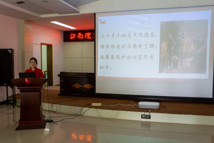 活動內容豐實,形式生動,融理論學習、歷史體悟與互動實踐于一體。儀式伊始,實踐隊員們在盤古山社區黨支部書記楊佑梅的引領下步入仁風山調查館,厚重的歷史積淀與先輩艱苦奮斗的實物場景,瞬間將大家帶入了那段波瀾壯闊的礦冶報國歲月。在公司會議室舉行的啟動儀式上,氛圍莊重。盤古山鎢業有限公司副總經理鐘益民首先致歡迎辭,飽含深情地闡述了企業根植紅土、服務國家戰略的發展歷程。隨后,大學生紅色文化宣講團黃惠賢同學以《盤古鎢砂路,鐵骨筑紅途》為題,聲情并茂地再現了革命戰爭年代鎢砂運輸線上滲透血與火的悲壯篇章;校史館講解員馬琮博同學則通過《盤古山與冶金學院的金石之路》,鉤沉起學校與礦山在冶金人才培養和科技攻關上休戚與共的光輝歲月。馬克思主義學院朱賢凌老師的專題思政課《鎢如何成為中國革命與工業發展的“關鍵礦產”》,更是將理論與實踐深刻交融,深刻揭示了鎢礦資源在中國革命史上的特殊貢獻及國家工業化進程中的戰略意義。最后,校黨委副書記徐志峰在講話中勉勵學子們深入理解礦冶精神的時代價值。活動的高潮在“思政課”教學基地揭牌和實踐隊授旗儀式中到來:徐志峰副書記與鐘益民副總經理共同為基地揭牌,鮮紅的隊旗由徐副書記鄭重授予實踐隊長,象征著“行走的思政課”正式揚帆啟航。儀式的尾聲定格在全體成員的合影中,記錄下這堂由紅色基因、礦冶血脈與時代使命共同澆筑的特殊思政課的第一篇章。
