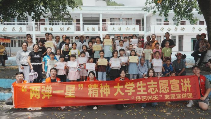 為弘揚(yáng)“兩彈一星”精神、賦能鄉(xiāng)村文化振興,南寧理工學(xué)院“丹藝問(wèn)天”志愿服務(wù)隊(duì)走進(jìn)馬山縣里民村,開(kāi)展暑期“三下鄉(xiāng)”社會(huì)實(shí)踐。團(tuán)隊(duì)通過(guò)創(chuàng)新宣講、農(nóng)事體驗(yàn)與紅色教育,將思政課堂扎根鄉(xiāng)土,點(diǎn)燃青少年強(qiáng)國(guó)夢(mèng)想。