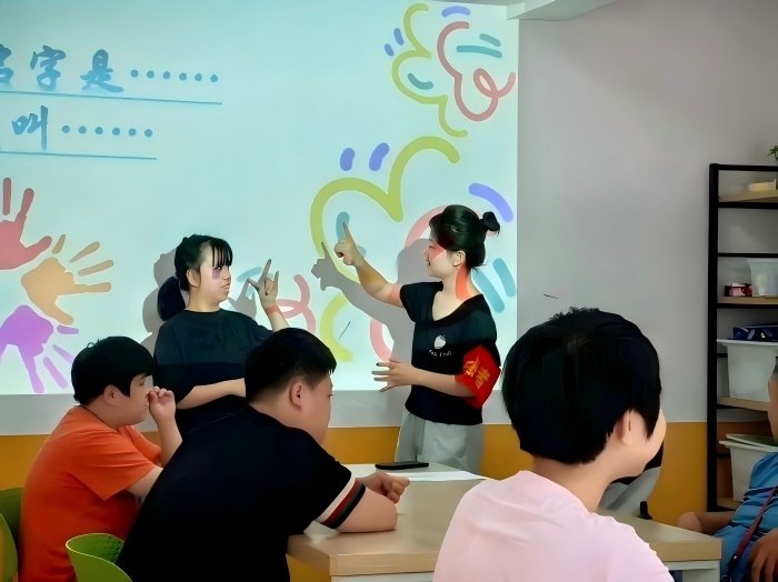 手語課上,學員們專注地學習日常手語表達,課后還會用剛學會的手勢向志愿者們比劃"謝謝";科學實驗課上,志愿者與學員們一起揭秘神奇的科學魔法;繪畫課上,志愿者帶著學員們用彩筆一筆一筆勾勒出五彩斑斕的內心世界;黨建課上,紅色的信仰種子輕輕播撒。