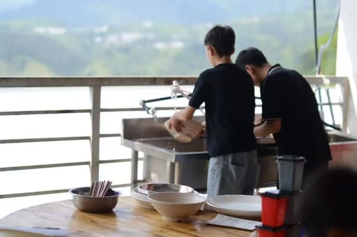下午的課程以勞動教育開始,孩子們按照老師的安排,以小組為單位劃分了各自的“責任田”,井然有序地投入了清潔工作。小小的身影們穿梭忙碌:幾個孩子握著掃帚,一絲不茍地將地面上的紙屑灰塵歸攏;另一組則提著水桶,賣力地拖著地板,所過之處留下一片清爽的光澤;水池邊,幾個孩子挽起袖子,仔細地清洗著碗筷,水聲嘩嘩伴著清脆的碰撞聲;晶瑩的水珠在陽光下閃爍……雖然天氣炎熱,孩子們汗流浹背,但都堅持完成了自己的任務。看著煥然一新的整潔教室,每個人的臉上都洋溢著收獲的喜悅笑容。