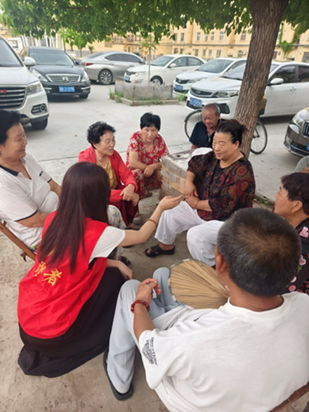 活動后,為更好的了解老人以及擴大影響范圍實踐隊員開始對社區(qū)負(fù)責(zé)人和老人進行走訪。走訪后,團隊發(fā)現(xiàn)各小區(qū)“受騙地圖”不一,為了加強各小區(qū)老人的反詐意識,實踐隊員進入不同小區(qū),把講堂搬到生活現(xiàn)場:涼亭里擺板凳講“故事接龍”,把最新騙局拆成段子,在小區(qū)中傳播知識;清晨菜市場、傍晚廣場舞,志愿者提菜籃、跟節(jié)拍,三言兩語“順嘴”提醒;活動花絮剪成15秒短視頻,發(fā)至“銀發(fā)守護群”,讓防詐提示像鄰里問候天天刷屏卻不覺煩