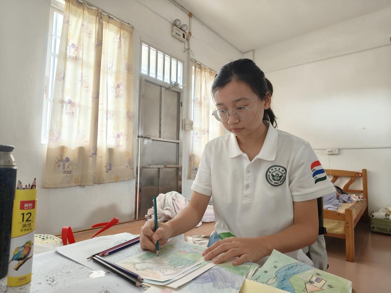 (圖為繪畫班老師在宿舍備課。 廖羽嫣 供圖)
