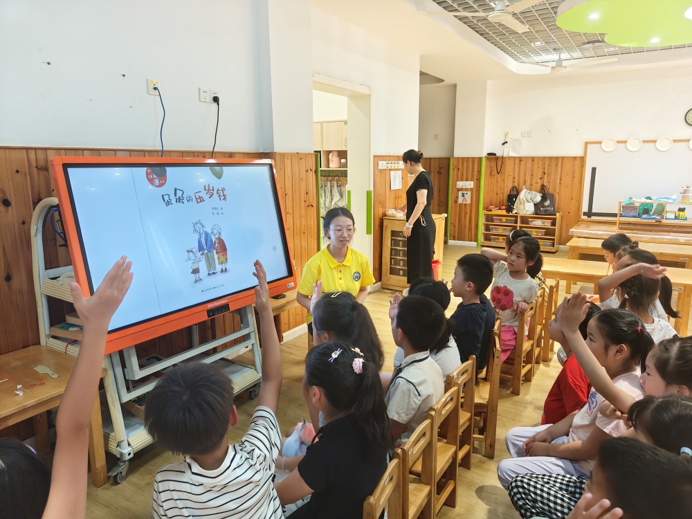 勞動所得如何管理?財富如何傳遞溫度?課程以繪本《朵朵的壓歲錢》為切入點,通過生動有趣的故事,幫助孩子們了解財富的規劃方式。大學生志愿者以“銀行儲蓄就像金魚媽媽生小金魚”的生動比喻,引導孩子們理解儲蓄增值。同時通過繪本讓小朋友們了解金錢還可以用于非遺文化傳承、援助災區重建、幫助患病兒童和特殊兒童等,讓孩子們明白金錢的價值不僅在于擁有,更在于如何合理使用和傳遞善意。