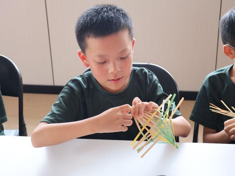 活動室內,荊楚大地孕育千年的竹編技藝煥發出鮮活生命力。紅承志愿服務隊隊員以荊州地區盛產的翠竹為媒,將蘊含“篳路藍縷”精神的荊楚文化精髓娓娓道來。一根根平凡竹篾,在精心指導下化身神奇素材。孩子們屏息凝神,稚嫩的手指嘗試著挑、壓、穿、繞的古老技法,青澀卻專注。竹條在指尖交錯纏繞,漸漸顯露出小船的雛形。這不僅是一次手作體驗,更是對“腳踏實地、勇于開拓”荊楚精神的躬身觸摸。當一艘艘承載著巧思與耐心的小小竹船在孩子們掌心“啟航”,古老技藝的堅韌與智慧,已隨竹香悄然沁入心脾。