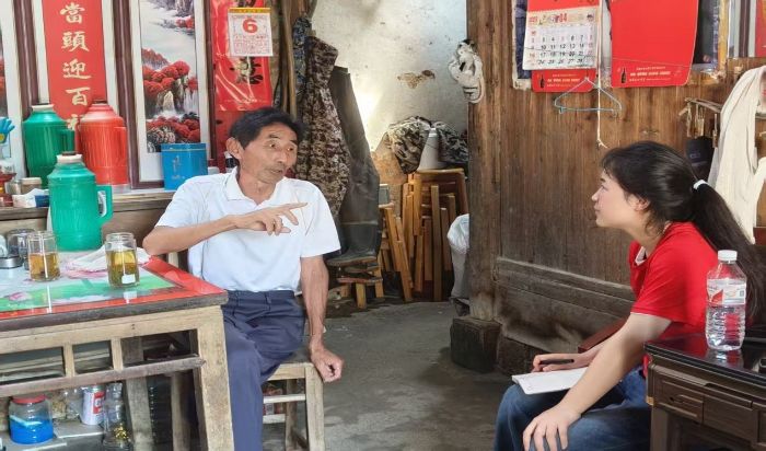茅坦山湖村,由十個(gè)自然村組成,位于貴池東部的墩上街道辦事處境內(nèi),北臨長(zhǎng)江,東倚青銅河,隔河與青陽縣相望。老屋唐、新屋唐、陽春王、項(xiàng)家四個(gè)自然村結(jié)成一個(gè)儺戲會(huì),共用一堂(共十九尊)面具。此行實(shí)踐團(tuán)有幸采訪到國家級(jí)非物質(zhì)文化遺產(chǎn)池州儺戲的代表性傳承人唐茂華。為讓實(shí)踐團(tuán)成員直觀感受儺戲魅力,唐茂華爺爺現(xiàn)場(chǎng)表演經(jīng)典儺腔,聲音高昂嘹亮,唱腔婉轉(zhuǎn)悠揚(yáng),表演間,老人時(shí)而瞪大雙眼,時(shí)而微蹙眉頭,配合手勢(shì)舞動(dòng),全身散發(fā)儺戲獨(dú)特氣質(zhì)。表演結(jié)束后,唐茂華老人的徒弟唐志杰指導(dǎo)實(shí)踐團(tuán)成員體驗(yàn)儺舞。唐志杰一邊幫成員系緊腰帶,一邊講解:“服裝是儺舞重要組成部分,從前制作一套儺服需耗費(fèi)數(shù)月,每針每線都寄托祈愿。”來到堂中空地,唐志杰開始傳授基本舞步。他親自示范,先左腳向側(cè)跨一步,膝蓋彎曲,同時(shí)上身前傾,雙手在身前比劃出圓弧軌跡;接著右腳迅速跟上,身體轉(zhuǎn)向另一側(cè),重復(fù)動(dòng)作。成員們跟在后面模仿,起初生疏笨拙,但在唐志杰耐心糾正下,漸漸有了模樣。在陽光照耀下,實(shí)踐團(tuán)成員身著儺服,隨著鼓點(diǎn)節(jié)奏舞動(dòng),仿佛穿梭時(shí)空,與古人對(duì)話。通過這次沉浸式體驗(yàn),大家對(duì)池州儺戲有了深刻理解,也深知這門古老藝術(shù)傳承之重。