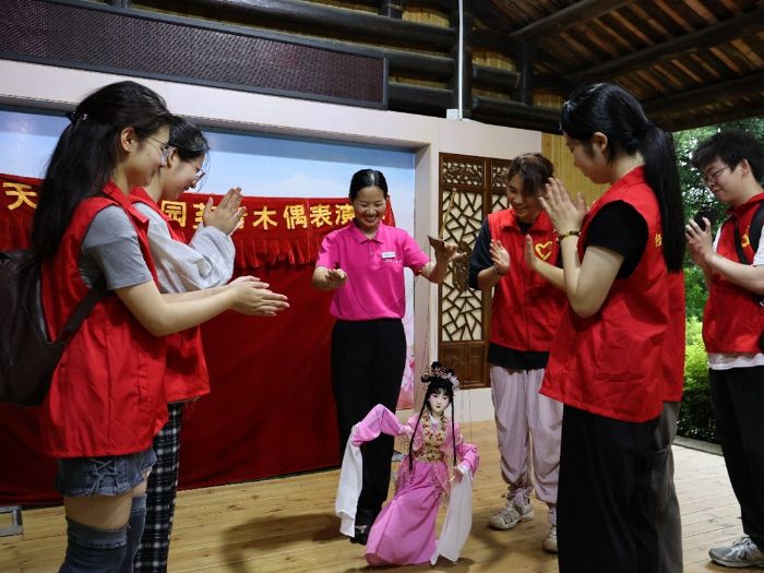 非遺文化體驗是此次“三下鄉(xiāng)”實踐的重點環(huán)節(jié)。隊員們首先觀摩了國家級非物質(zhì)文化遺產(chǎn)——漳州提線木偶的精彩表演,近距離感受了藝人憑借指尖巧技賦予木偶生命的獨特藝術(shù)魅力。隨后,實踐隊隊員們還向老師請教學(xué)習(xí)甩袖技巧。看似簡單的一個小動作,實則需要精準(zhǔn)把控手腕力度與絲線角度。老師手把手指導(dǎo),從握線講起。起初絲線纏結(jié),衣袖不聽使喚,經(jīng)反復(fù)練習(xí),木偶衣袖終于劃出優(yōu)美弧線。隊員們笑逐顏開,真切體會到非遺技藝的艱辛與奇妙,感受文化傳承的重量。