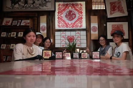 在縉云縣非遺剪紙展示館,實踐隊領略了以“八士門”“耕讀家風”等古建筑鏤刻為特色的剪紙藝術。這里不僅是創作空間,更是非遺傳承與鄉村美育的生動課堂,展現了傳統工藝活化鄉村、凝聚鄉土的澎湃力量。