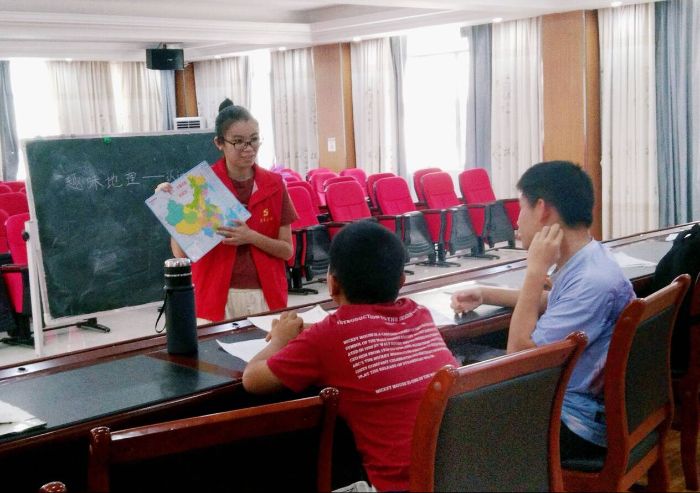 圖為趣味地理課堂,志愿者給孩子們講解地理知識。宋平平攝