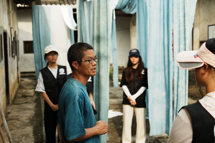 圖為返鄉孩童與隊員一起體驗染布。李宛瑜 許梓坤攝