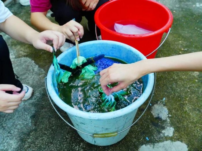 圖為隊員體驗染布。李宛瑜 許梓坤攝