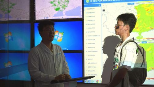 "超級站可以實時監測200多項環境指標,數據精度達到國際先進水平。"在大氣環境監測超級站,團隊成員近距離觀摩了大氣污染物走航監測車、激光雷達等先進設備。環境工程專業學生賴同學駐足于精密儀器前感慨:“這些‘環境聽診器’不僅監測污染,更讓我們理解了精準治污的科學邏輯。”工作人員現場演示的污染物溯源技術,進一步加深了學子們對大氣治理技術鏈條的認知。