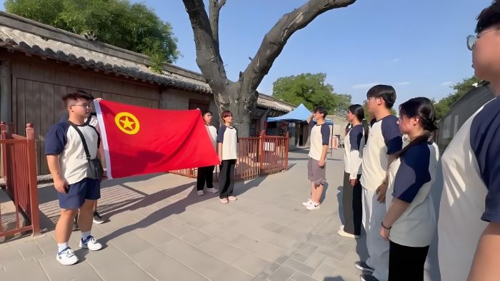 實(shí)踐團(tuán)成員們踏入冀中平原的紅色熱土。在冉莊地道戰(zhàn)遺址,他們親身體驗(yàn)了冀中人民“以地道為盾、以智慧為矛”的抗戰(zhàn)智慧。站在刻滿彈痕的老槐樹下,面對團(tuán)旗莊嚴(yán)宣誓,實(shí)踐團(tuán)成員趙同學(xué)激動地說:“站在這里,我仿佛能感受到先輩們?yōu)榱吮Pl(wèi)家園、抵抗外敵所付出的巨大犧牲。這份精神將永遠(yuǎn)激勵著我,為實(shí)現(xiàn)中華民族偉大復(fù)興而不懈奮斗。”