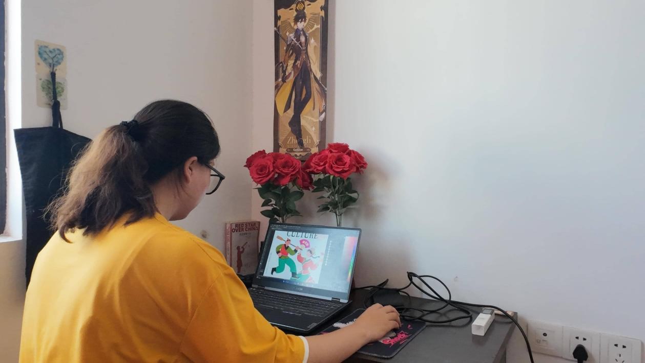 “照片必須清晰展現(xiàn)紋樣的細節(jié),動態(tài)過程也要抓拍到。”指導(dǎo)老師劉偉敏在線上會議中強調(diào)。7月7日的中期評審會上,成員們展示了各地采集的素材,并圍繞“如何將采集到的靜態(tài)紋樣轉(zhuǎn)化當下更加喜聞樂見的形式”展開討論,最后計劃制作成動態(tài)海報。