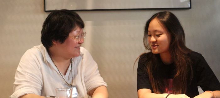 圖為團(tuán)隊(duì)成員與劉璽老師交談。楊帆攝