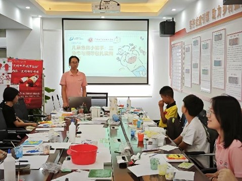 生命守護(hù)者計(jì)劃:急救技能游戲化教學(xué) "急救超能力"課堂充滿緊張與歡笑。小老師用動(dòng)畫《急救小隊(duì)》導(dǎo)入,當(dāng)視頻演示"流鼻血要低頭而非仰頭"時(shí),學(xué)生們不約而同摸向自己的鼻子。情景模擬環(huán)節(jié)尤為精彩。隨后的情景模擬環(huán)節(jié)將課堂推向高潮:學(xué)生們分組扮演"急救員"與"傷員",在限定時(shí)間內(nèi)完成傷口處理、包扎固定、緊急呼救等系列操作。