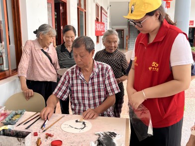老人繪扇遞溫情 互助共繪"同心圓" 社區低齡老人志愿者發揮繪畫特長,與高齡老人共同創作扇面:選圖案、調色彩、題祝福;一筆一畫間,扇面漸顯生機。活動現場歡聲笑語不斷,老人們互相贈送手繪扇,指尖的溫度與默契的笑容交織,讓"互助"化作可觸可感的溫暖。