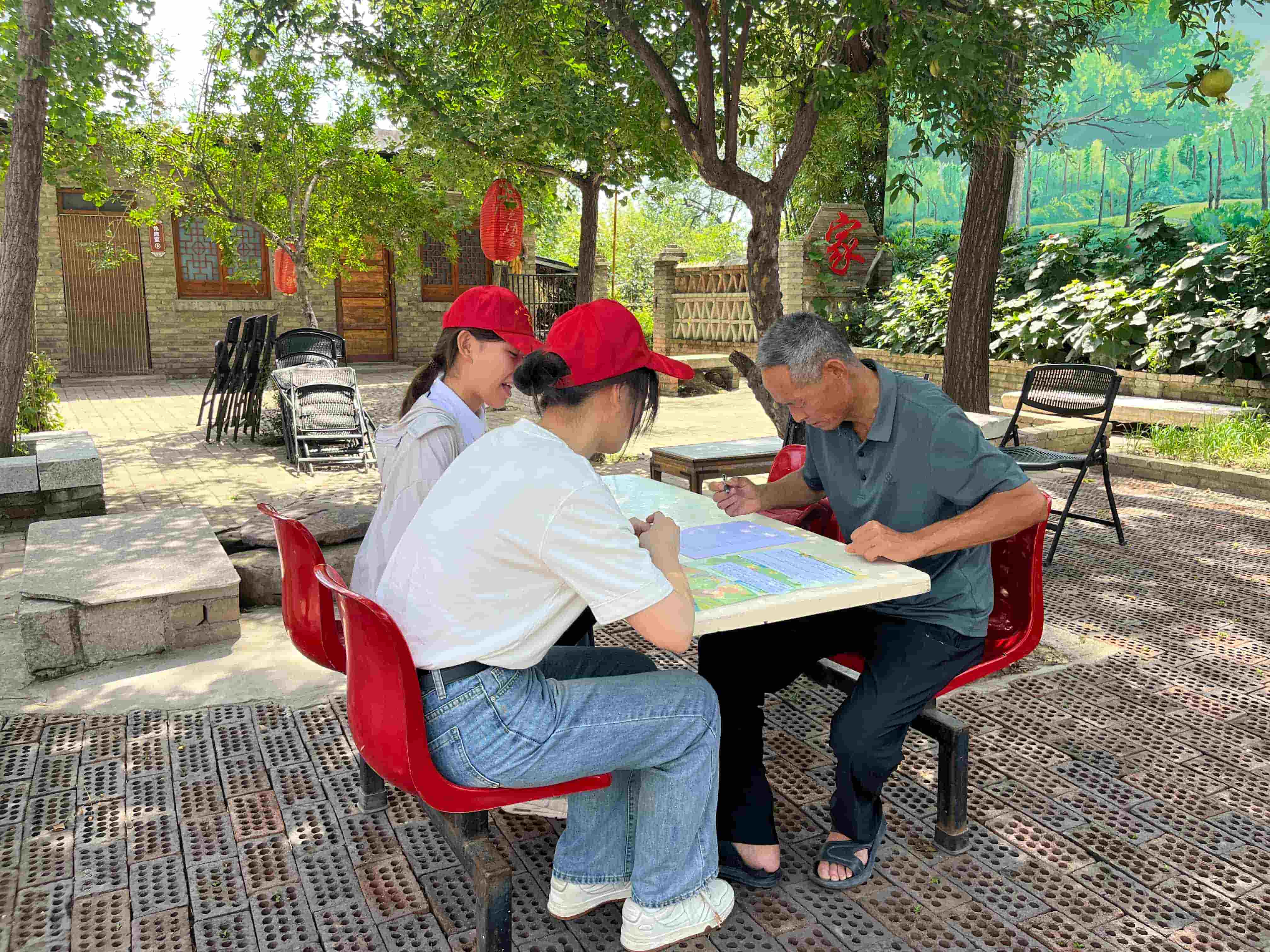 圖為隊(duì)員們引導(dǎo)王堂村村民填寫調(diào)查問卷。張一諾 供圖