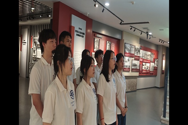 隨后,實踐團來到弋陽縣博物館,剛進入展館就被序廳巨幅銅板畫“在弋陽看見可愛的中國”所吸引,聚焦于其鮮明的紅色主題所象征的革命精神。在博物館講解員的引導與講解下,成員們重點學習了弋陽光輝的革命斗爭史:方志敏等革命先驅在此傳播馬克思主義火種,從領導創建閩浙贛革命根據地到率抗日先遣隊出征,從獄中寫下《可愛的中國》到慷慨就義的事跡,通過實物與圖文相結合的方式生動呈現。實踐團成員在相關展區前久久佇立,了解紅十軍誕生、抗日先遣隊組建等革命史實,深刻感悟弋陽這片紅土地上“愛國、創造、清貧、奉獻”的精神傳承。