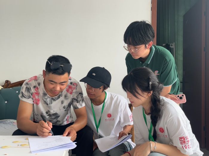 實(shí)踐團(tuán)繼續(xù)深入四堡子村開展雙線并行式入戶調(diào)研,隊(duì)員們穿行于村舍巷陌,以專業(yè)問卷與暖心訪談叩開家門。在普通話推廣程度調(diào)研中,系統(tǒng)了解當(dāng)?shù)厝粘=涣鞯葓鼍爸惺褂闷胀ㄔ挼念l率、熟練程度及實(shí)際需求;關(guān)于民族團(tuán)結(jié)主題,實(shí)踐團(tuán)結(jié)合積石山多民族共居現(xiàn)狀,講解“石榴籽”精神內(nèi)涵,傾聽鄉(xiāng)親們對民族團(tuán)結(jié)的切身感悟。