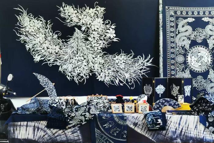 圖為正興染坊的藍印花布工藝品。何嘉圓攝