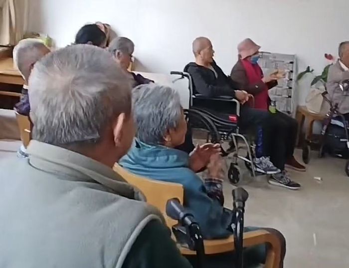 活動開始,志愿者們便與養老院的長者們展開了親切的互動。他們圍坐在老人身邊,化身耐心的傾聽者,用心聆聽長者們講述過往歲月的故事、人生經歷的感悟。青年學子們也真誠分享著自己的校園生活、學習心得與成長憧憬。一位志愿者輕聲為一位慈祥的老奶奶朗讀了一段文字:“人生就像一場旅行,不必在乎目的地,在乎的是沿途的風景以及看風景的心情。”老奶奶聽罷,臉上綻開溫暖的笑容,連連點頭道:“說得真好。人這一輩子啊,能平平安安、開開心心地過好每一天,比什么都實在、都強!”樸實的話語中蘊含著生活的智慧,溫馨的交流瞬間拉近了心與心的距離,歡聲笑語在房間里流淌,傳遞著跨越代際的溫情暖意。