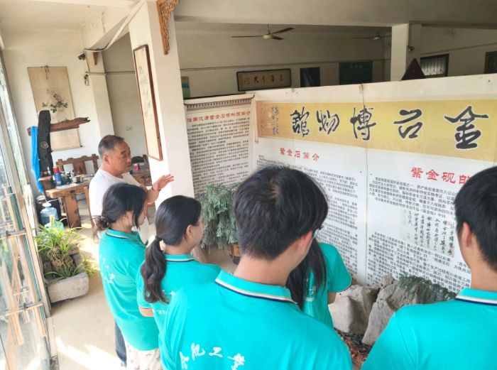 7月7日下午,團隊成員到達淮南漢唐紫金石博物館,應(yīng)偉館長帶領(lǐng)隊員們穿越時空長廊。從漢唐的質(zhì)樸到明清的精巧,一方方硯臺訴說著“質(zhì)堅而潤,色紫而雅”的千年風(fēng)雅。深度訪談環(huán)節(jié),應(yīng)館長提出的“將古城墻刻在紫金石上,結(jié)合淮南典故,把地域文化烙印在硯臺之中。”的創(chuàng)新思路,啟發(fā)隊員們思考如何將地域文化元素深度融入食品設(shè)計來提升產(chǎn)品文化附加值。