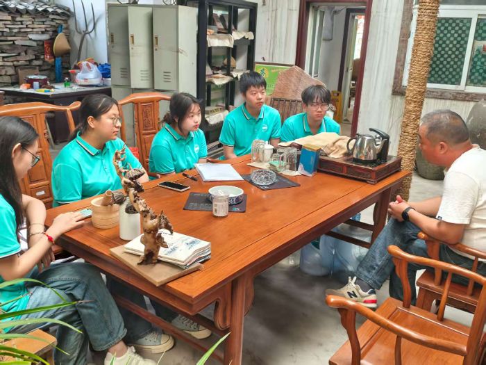7月7日上午,團隊來到紫金硯馮長文大師工作室。雖然紫金硯本身并非食品,但其承載的匠心精神,文化內(nèi)涵與創(chuàng)新路徑為食品學(xué)子帶來深刻啟發(fā)。馮師傅現(xiàn)場演示了“相石—設(shè)計—雕刻—打磨”的全流程,其行云流水的刀法令隊員們嘆為觀止。并且馮師傅“每一刀都要順應(yīng)石紋”的技藝,類比于食品加工中尊重原料特性的重要性。