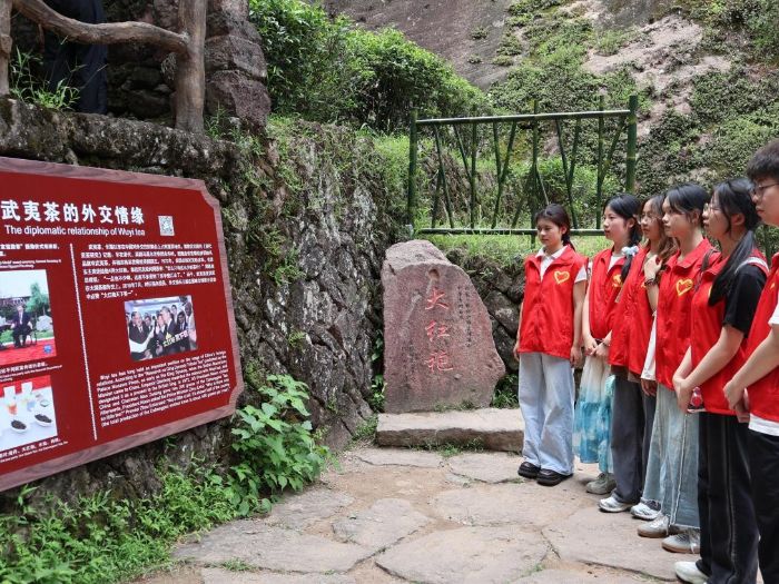 隊員們細讀石壁上的簡介,得知武夷茶常作國禮,見證諸多外交時刻。尼克松訪華獲贈大紅袍,其醇厚韻味成中外溝通紐帶,傳外交佳話。一片茶葉,日常可作杯中飲,卻能承載千年傳說,化身外交信使。從狀元披袍的溫情到國禮傳情的厚重,武夷茶以微末之身,串聯起文化根脈與世界對話。