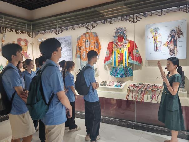 深植文化根脈,汲取精神滋養。在陜西省京劇研究院,師生驚嘆于國粹藝術的華美演繹,更深刻體悟方寸舞臺承載的千年民族氣韻。演員們展示生旦凈丑四大行當精髓,隊員穿戲服、學身段,在互動中感受跨越時空的家國情懷。陜西秦腔博物館內,粗獷豪放的古老唱腔激起濃厚興趣。講解揭示秦腔如何將時代精神注入傳統劇目,讓“最古老聲腔”勇立文化傳承潮頭,為民族精神書寫當代注腳。