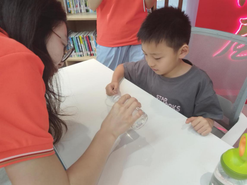 實踐團隊在社區給小朋友們辦了一場別開生面的科普派對。其中,隊員任瑾用《門捷列夫很忙》這個超有趣的科普小視頻,用簡單易懂的話語把化學知識悄悄種進了每個小朋友的心里;李柯和吳雨涵兩位成員則帶著孩子們親手做“魔法藥水”實驗,看著顏色從透明的藍慢慢變渾濁,再一滴酚酞下去,神奇地變成了紫色,讓小朋友們親身體驗到了科學的魅力,點燃了他們探索世界的好奇心。這種既好玩又長知識的方式,讓科學變得生動又有趣,傳遍了社區的每個角落。