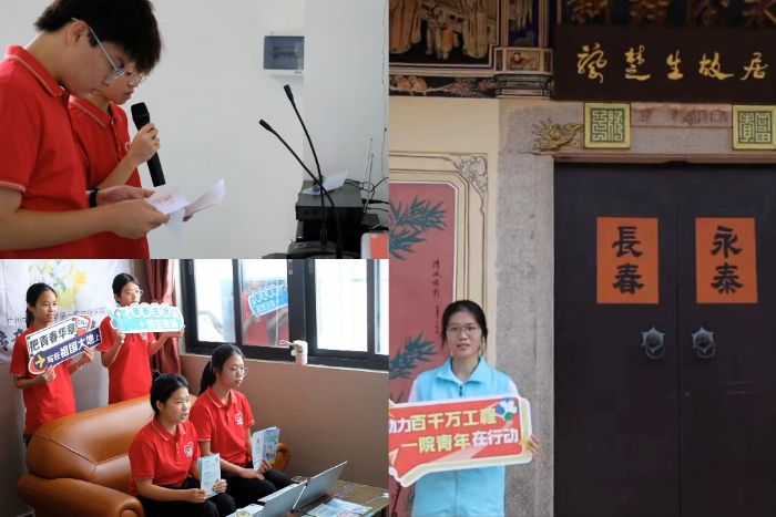 清晨,講解組隊員赴勝前社區居委會,用潮汕話廣播國家資助政策,用鄉音講清資助政策的來龍去脈。下午2點,政策直播組成員提前來到直播場地排練,為資助政策講解直播做好準備,3點直播準時在微信視頻號開播。利用直播平臺優勢,擴大宣傳面,讓外出務工家長、大學生等能夠及時獲政策信息,實時互動答疑,提升傳播效率,增強政策理解與可操作性,激勵更多大學生參與下鄉活動。同時,紅色微團課拍攝分隊前往蔡楚生故居,捕捉歷史記憶,力求呈現故事與紅色精神,讓歷史通過鏡頭傳遞更多人。
