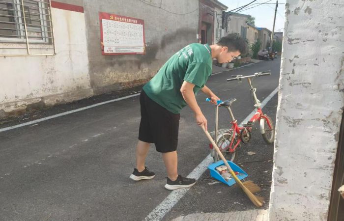 從教師家里出來后同學(xué)們和村委會(huì)溝通后,社會(huì)服務(wù)踐行團(tuán)的隊(duì)員們進(jìn)行了簡(jiǎn)單分組,投入到大掃除中。大家熱情高漲,發(fā)揚(yáng)著團(tuán)結(jié)協(xié)作、吃苦耐勞的精神,在村干部的帶領(lǐng)下,和村里的黨員、志愿者等一起,對(duì)村莊的多個(gè)區(qū)域進(jìn)行了清掃,同時(shí)對(duì)一些不文明行為進(jìn)行了勸導(dǎo),共同為打造整潔的村莊環(huán)境努力。