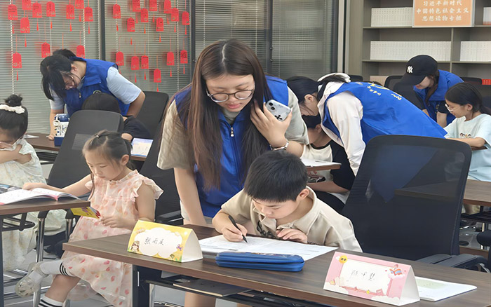 20250702星河逐光實踐團隊輔導兒童完成暑期作業。孫甜琪 供圖