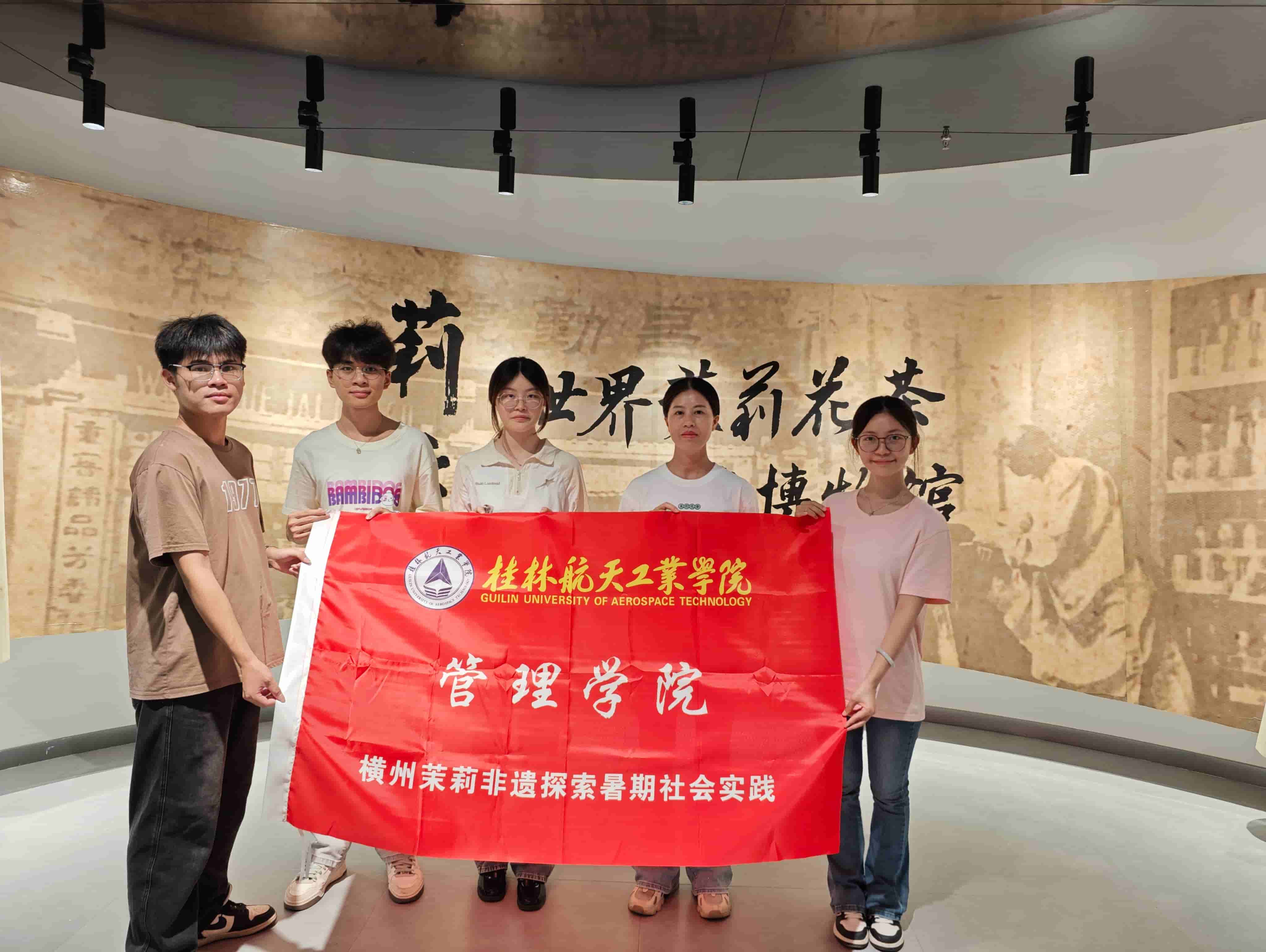(圖為實踐團(tuán)成員在橫州市茉莉花非遺博物館與工作人員合影留念 陳語薇 攝)
