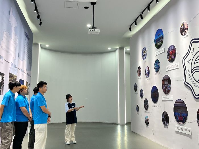 圖為水情基地講解員帶領實踐隊員回溯水利事業發展的紅色脈絡。袁曉楠攝