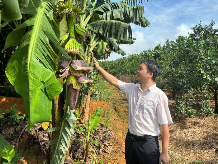 韋書記介紹香蕉種植技術。梁筱敏攝